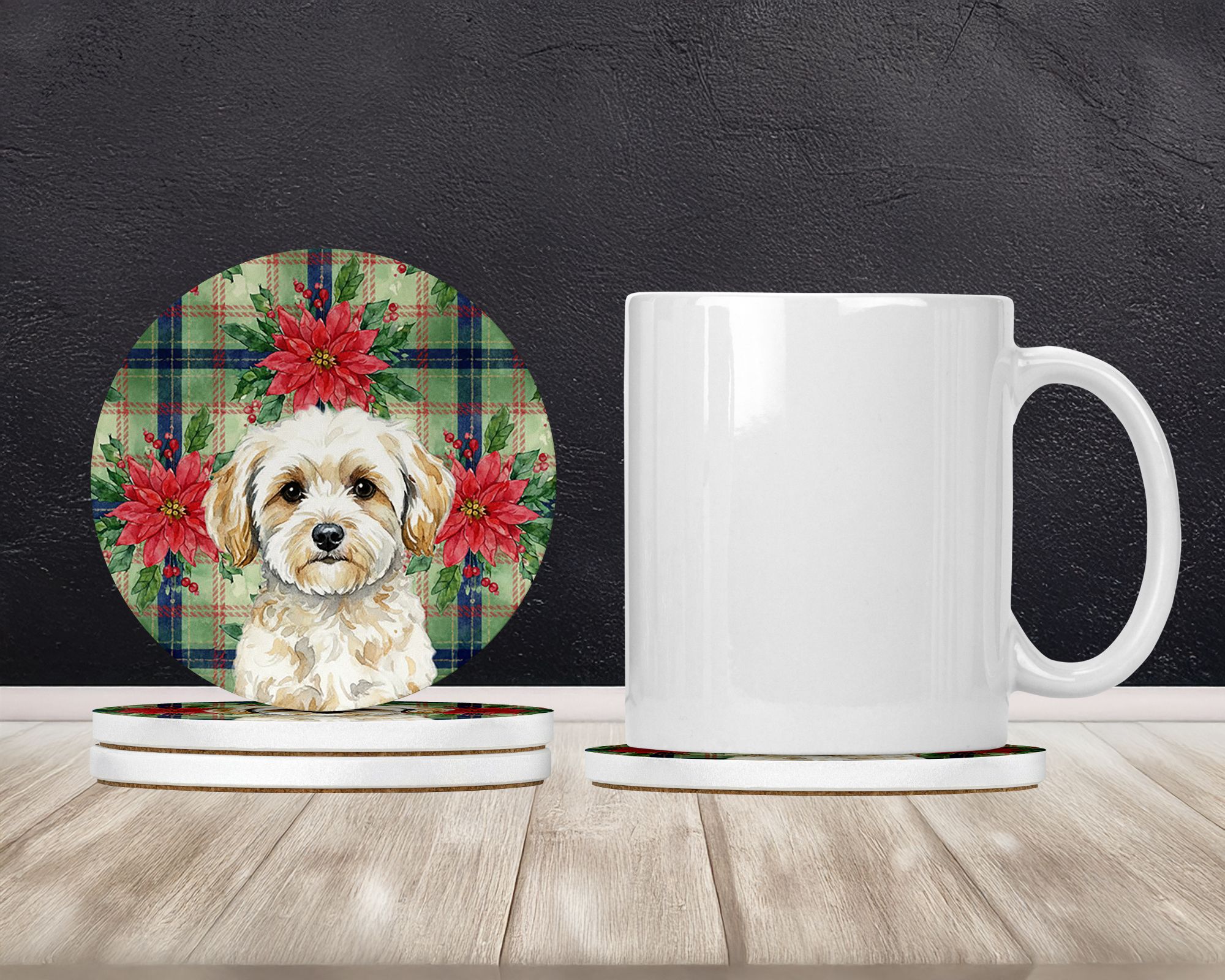 Home > Maltipoo Christmas PoinsettIas Large Sandstone Coasters Pack of 4 Absorbent Round Coasters Decor Gifts for Men or Women, 4 in, Multicolor