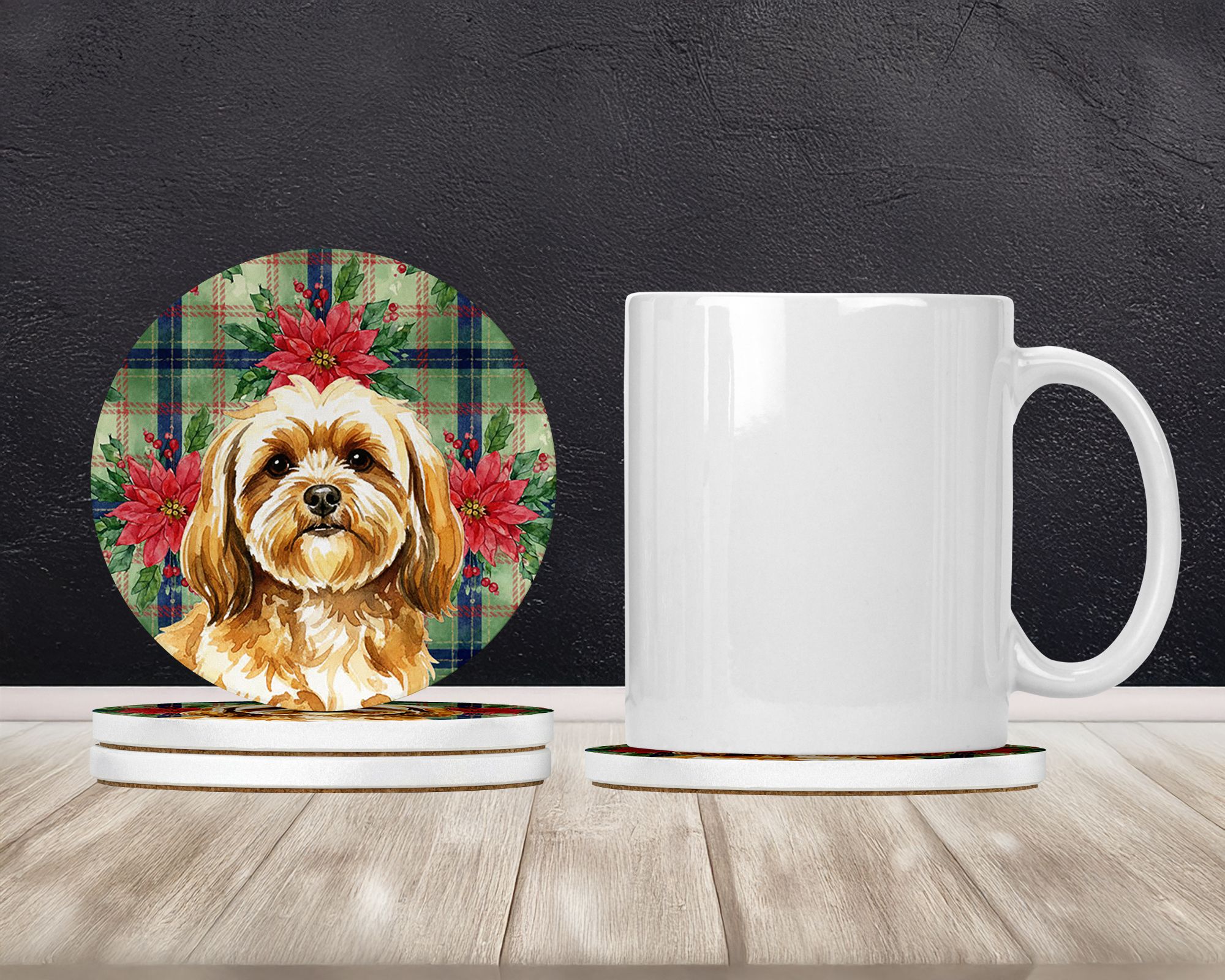 Home > Gold Lhasa Apso Christmas PoinsettIas Large Sandstone Coasters Pack of 4 Absorbent Round Coasters Decor Gifts for Men or Women, 4 in, Multicolor
